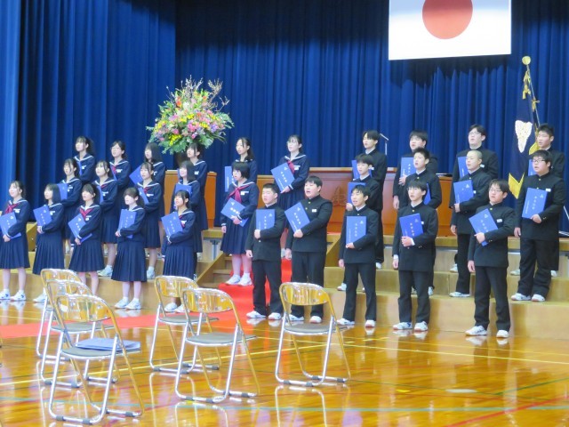 3月12日(木)卒業証書授与式4 公開日 2026/03/12 更新日 2026/03/12 お知らせ 卒業生は「あなたへ~旅立ちに寄せるメッセージ~」を歌いました。 体育館いっぱいに歌声が響きました。