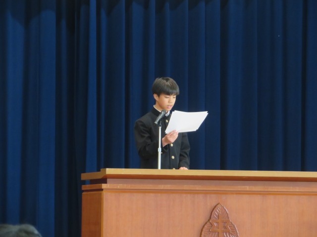 3月24日(火)意見発表 公開日 2026/03/25 更新日 2026/03/24 お知らせ 1、2年生の代表生徒が意見発表を行いました。 今年度のあったかプロジェクトに参加して学んだことや、これから進級してがんばりたいことなど、堂々と発表しました。