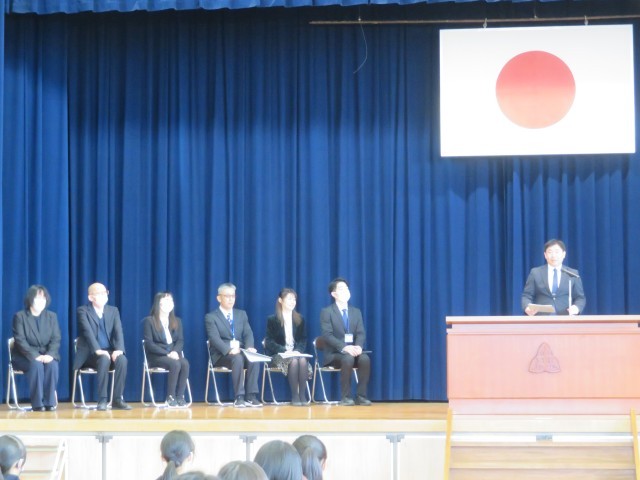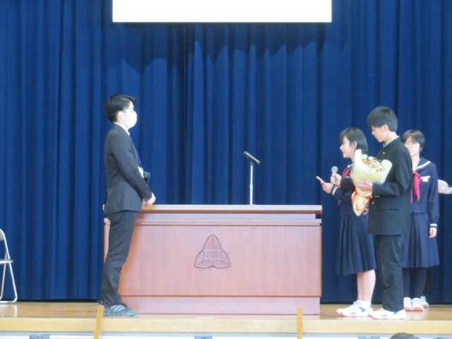 お世話になった先生方へ、生徒代表がお礼の言葉と花束を贈りました。