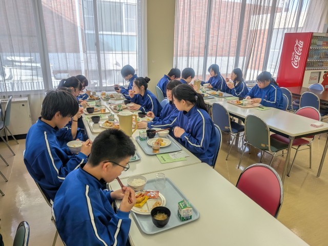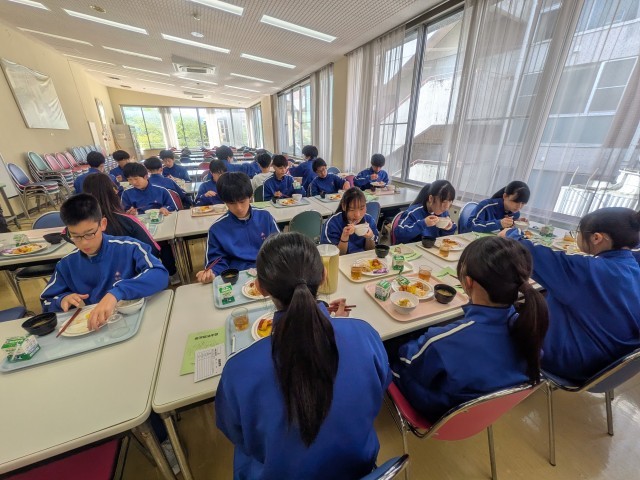 宿泊室の清掃、荷物の整理を行ったのち、元気に朝食をとっています。