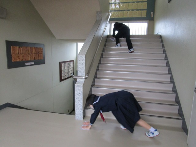 1日に使用した校舎を6限後には、10分間、時間いっぱい清掃に取り組んでいます。