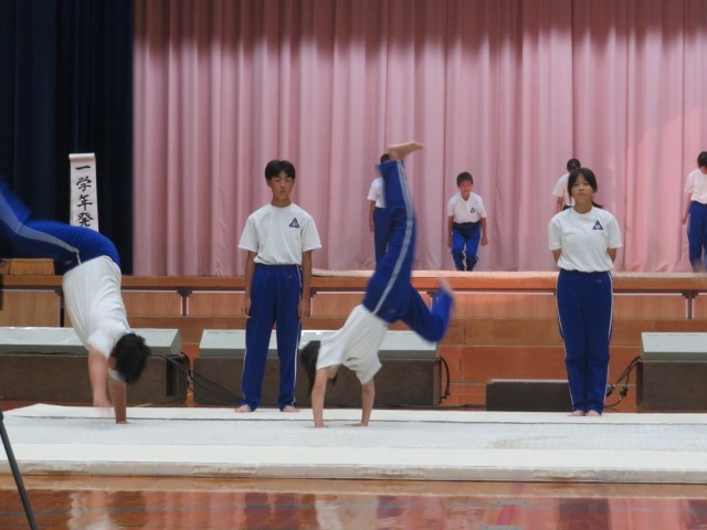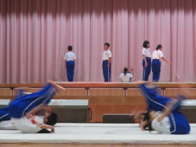 体育の授業で練習を重ね、技の完成度を上げることや手足を伸ばすことを意識して取り組みました。