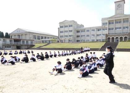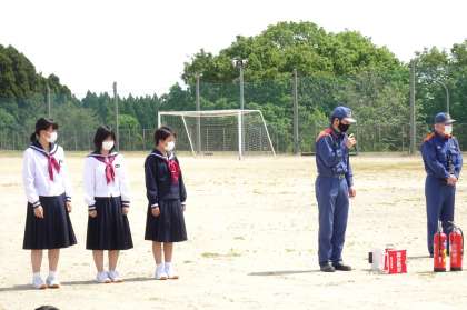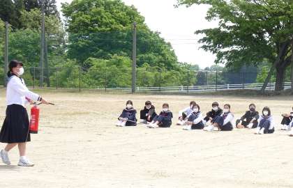 避難訓練 5月12日(木) 公開日 2022/05/12 更新日 2022/05/12 お知らせ 生徒も教職員も本気で臨みました。消防署の方から「よい取り組みでした」とほめていただきました。消火器の使い方を教わり、3人の生徒が実践しました。3人が落ち着いた取り組みに、大きな拍手が起こりました。