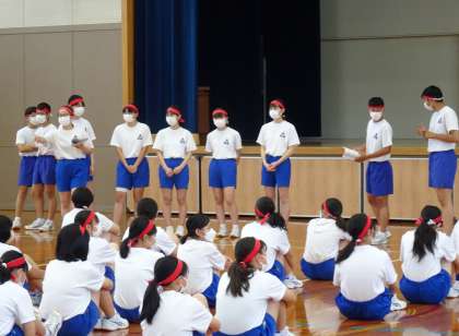 3年生が中心になって、赤白の団に分かれて、並び方やリレーの選手を決めました。