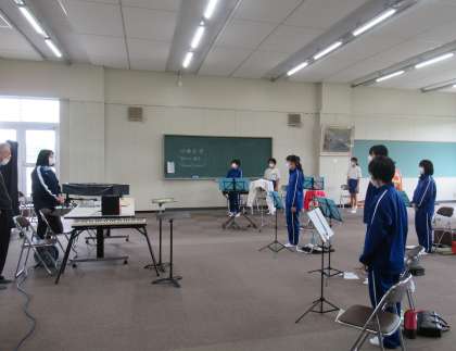 吹奏楽祭に向けて 5月15日(日) 公開日 2022/05/15 更新日 2022/05/15 お知らせ 6月5日(日)AMに開催される吹奏楽祭に向けて、合奏練習に励んでいます。1年生も担当楽器が決まり、早速音出しをしています。部長・副部長の言葉です。「新しいメンバーで音程を合わせ、新しいハーモニーをつくり出せるように頑張ります」
