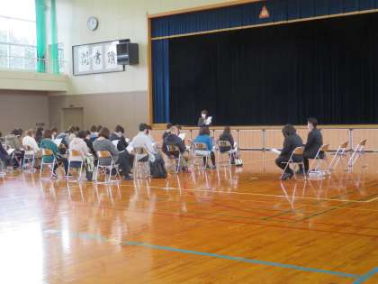 今年度最初の学習参観が行われました。生徒たちは緊張しながらも積極的に発言する姿が見られました。そのあとに、各学年で保護者懇談会が開かれ学年ごとで修学旅行や進路に向けての日程、学校での様子についての話がありました。