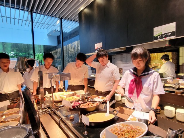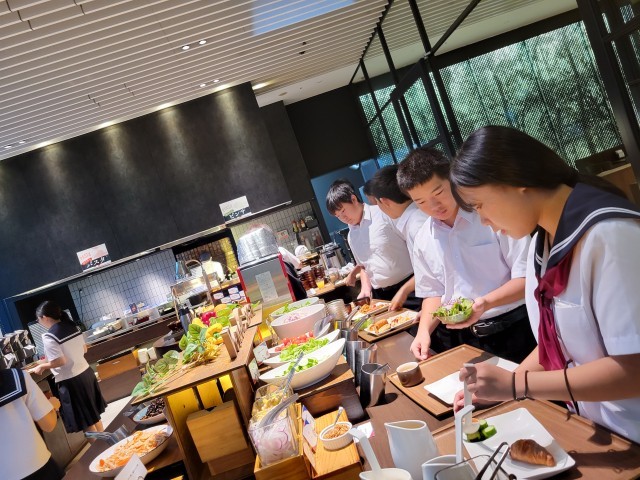 ホテルのおいしい朝食バイキングを食べ、今日の活動に備えます。