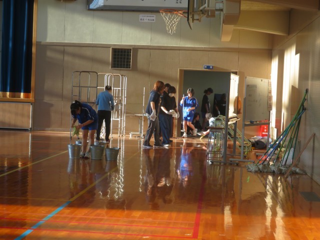 日頃なかなか生徒だけでは掃除できない校舎周辺の側溝や体育館の器具庫、ギャラリー等を綺麗にしました。