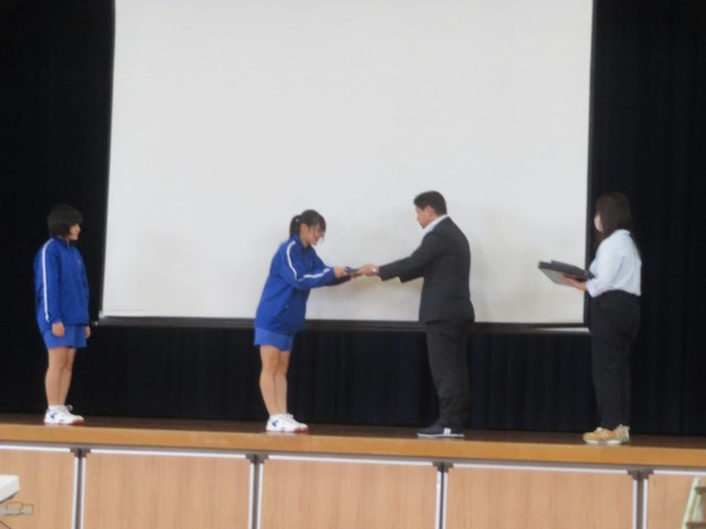 市内中学生の社会福祉に関する作文の募集において、本校生徒が最優秀者として選ばれました。今日この会で表彰を受けるとともに、作文の朗読を行いました。生徒は、思いやりの心を綴った作文を堂々と読み上げていました。