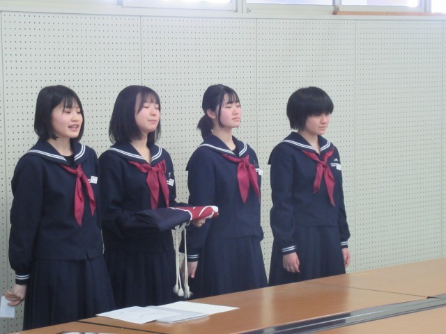 後期生徒会役員が活動を振り返り、新生徒会役員が抱負を述べました。