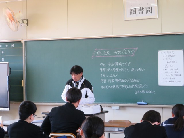 明日はいよいよ1年生が入学してきます。思いやりあふれるあたたかい蟹谷中学校を作っていきましょう。