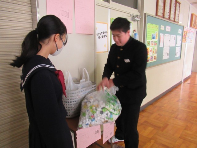 生徒会によるペットボトル回収が始まりました。