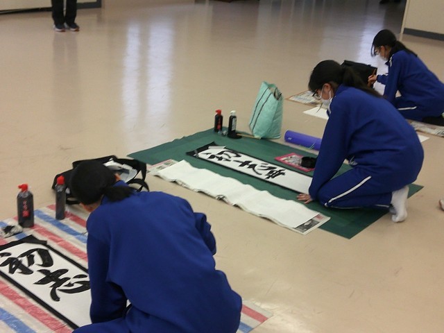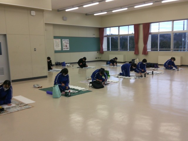 市書き初め大会を本日の放課後にランチルームで行いました。