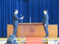 学校生活の様々な場面でリーダーシップを発揮し学校を引っ張ってくれた3年生に向けて、感謝の気持ちをこれからの応援の気持ちを込めて在校生が送辞を述べました。 卒業生は答辞の中で、仲間と過ごしたたくさんの思...