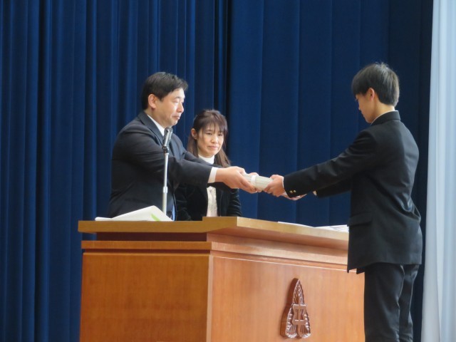 学校長は式辞の中で、これからも思いやりを大切に、時に訪れる向かい風の時もチャンスに変えて取り組んでいってほしいと述べました。 来賓からも祝辞をいただきました。 また、たくさんの祝電・メッセージをいただ...